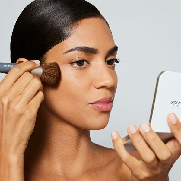平らなトップと短いハンドルが特徴のコンプレクションブラシで、パウダーを均一に塗布してブレンドするためにデザインされています。